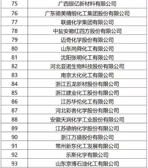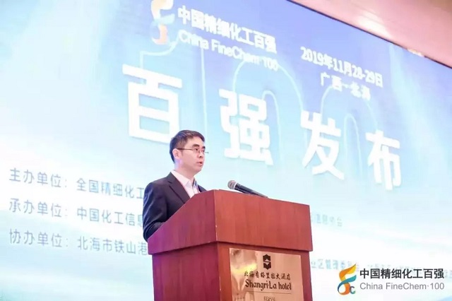 2019年11月28日,在由全国精细化工原料及中间体行业协作组、中国化工情报信息协会在广西北海联合主办,中国化工信息中心承办,北海市铁山港区人民政府、北海市铁山港(临海)工业区管理委员会协办的“第十九届国际精细化工原料及中间体(铁山港)峰会暨2019中国精细化工百强发布会”上,公布了“2019中国精细化工百强”榜单。