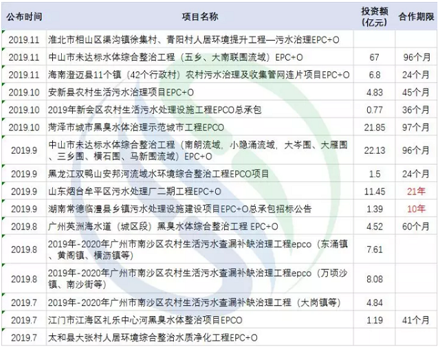 事实上,这只是EPCO类水环境项目的高光时刻,近期出现的同类项目已小有气候,还有一波未开启招标的也正在赶来的路上。近期典型水环境EPCO项目如下表所示: