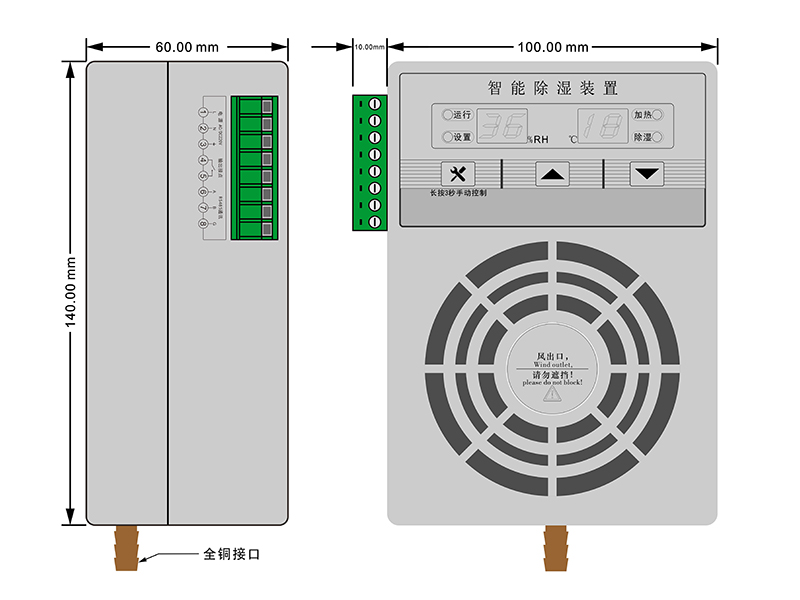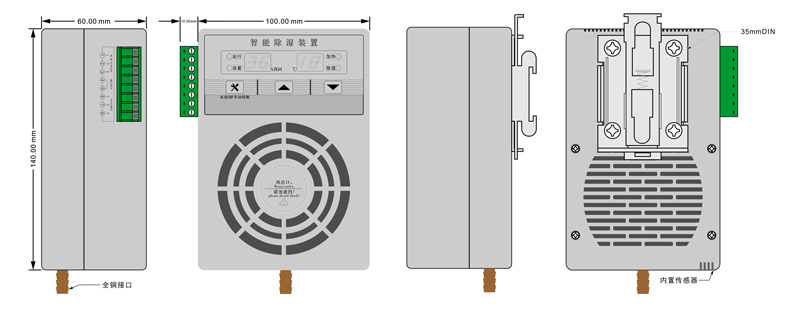 7、采用专用防潮元件,外壳采用铝合金结构,保证在潮湿环境下正常工作;