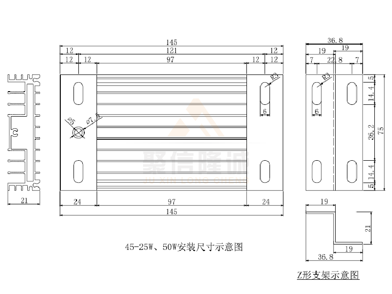 DJR-145□ 25W | AC220V | 25W±10% | 1930Ω±10% | 铝合金6063-T5 | 镍铬合金丝 |