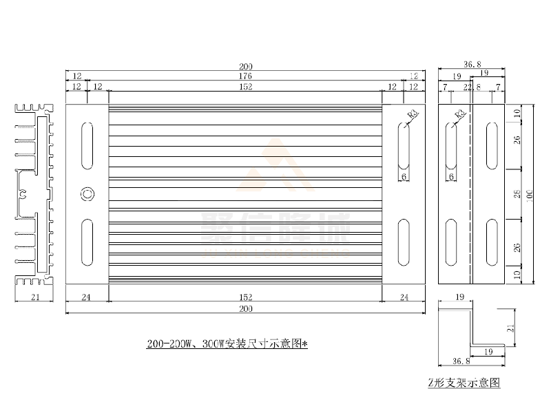 DJR-200□ 200W | AC220V | 200W±10% | 240Ω±10% | 铝合金6063-T5 | 镍铬合金丝 |