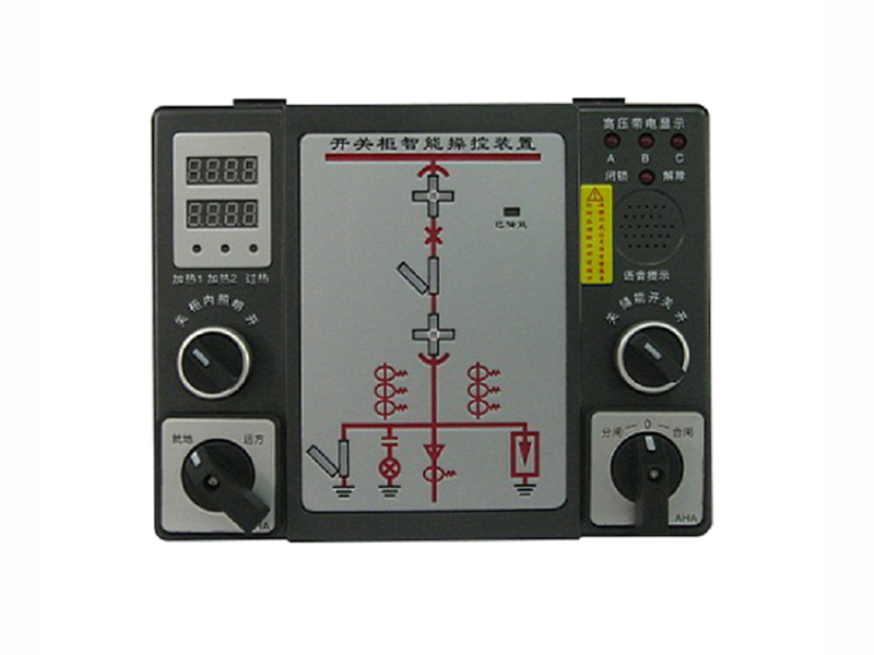 智能操控装置具有一次回路模拟图及开关状态指示,高压带电显示,自动温湿度控制,人体感应自动照明,语音提示,电参数测量及RS485通讯接口等众多功能,集操作、显示于一体。